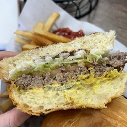 On 6/29 about 6:30 I ordered the cheese burger combo without condiments. I also ordered two Cajun wings and four shrimp. When asked how I would like my shrimp (corn mill or flour) the guy taking my order suggested I get two of each which I thought was a great idea. I'd like to give recognition to the man behind the counter taking my order. I mentioned to him that it was my first time in the establishment and he was very patient, pleasant and engaging. He definitely made my experience a great one! The burger was fantastic. It's huge! The patty had lots of flavor. The buns they use are amazing. All of the toppings came through in a great way. The fries were nice and there were plenty. The Cajun wings were underwhelming. Not to say they were bad but with the cajun description I was expecting more. The shrimp was cool and for my preference I'd go with the corn mill batter. I can't wait to go back and try a more interesting burger and explore more of their menu. The dining area was nicely kept so I'll be eating there instead of taking it to go.